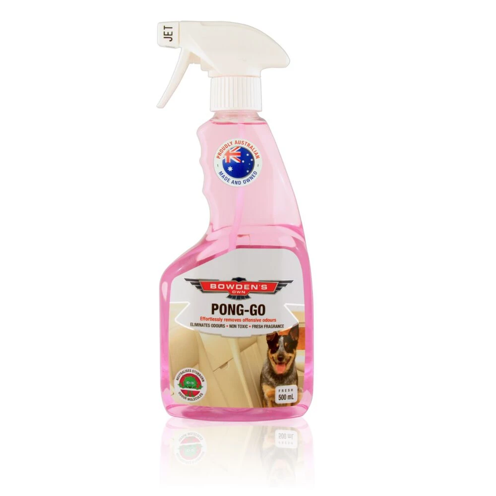 Bowden’s Own have created the Pong-Go to eliminateany stubborn smells from the car, boat and house, including mould from A/C,smoke, pets, food, kids, smelly mates, beer, car sickness, and seafood smellsand leaves a subtle, fresh and clean fragrance. It’s non-toxic, safe for allcloth, carpet, vinyl & leather interior trim and works very well on sweatyrace suits, helmets and boots.