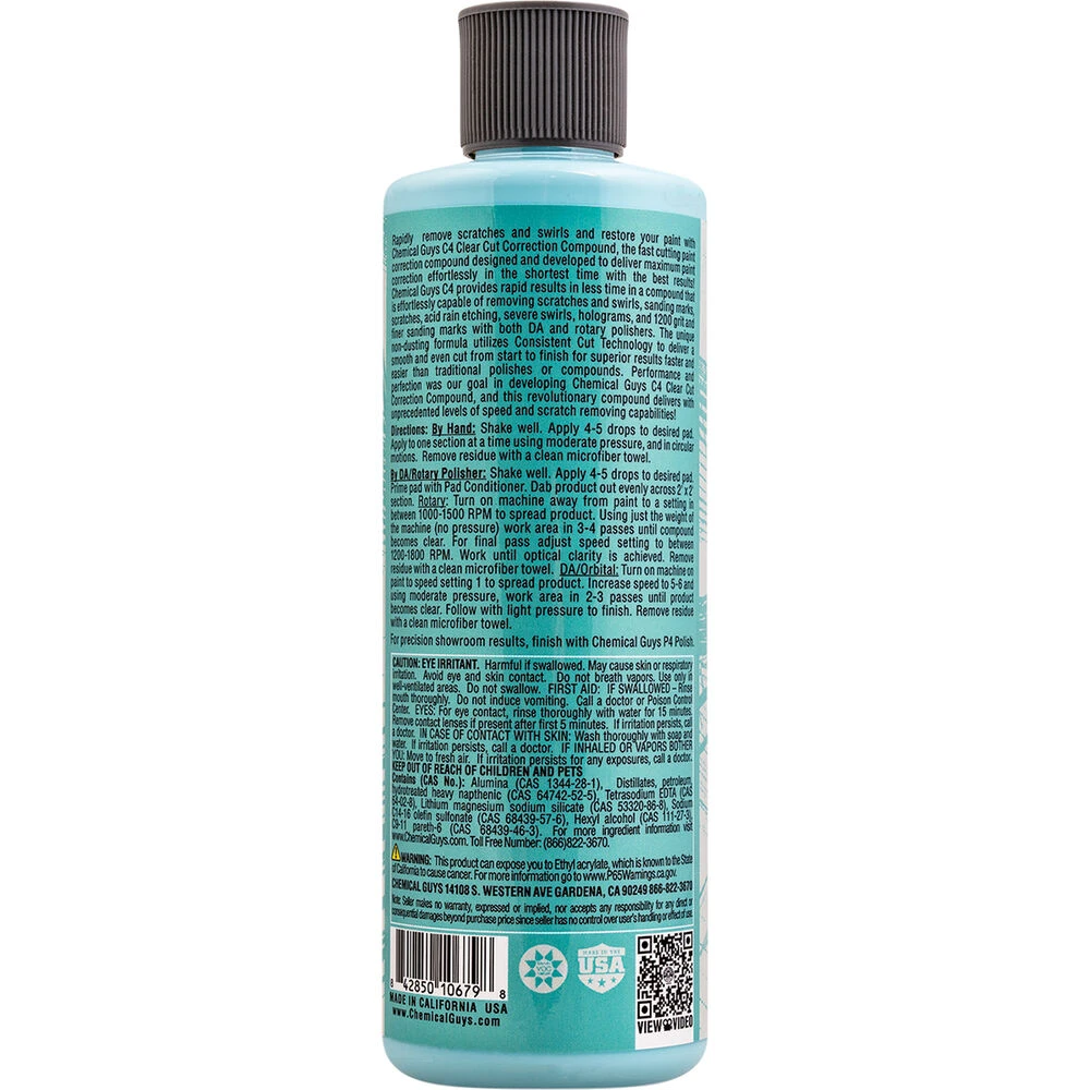 The name of this product says it all – C4 is Clear Cut Correction Compound. When it comes to removing defects, etching, scratches, swirls and acid rain marking, C4 is unbeatable. For professional results by machine or hand, Chemical Guys C4 is the one stop shop to restore brilliant colour and shine to your paintwork. Follow up with P4 polish to complete the job and bring back amazing levels of shine!