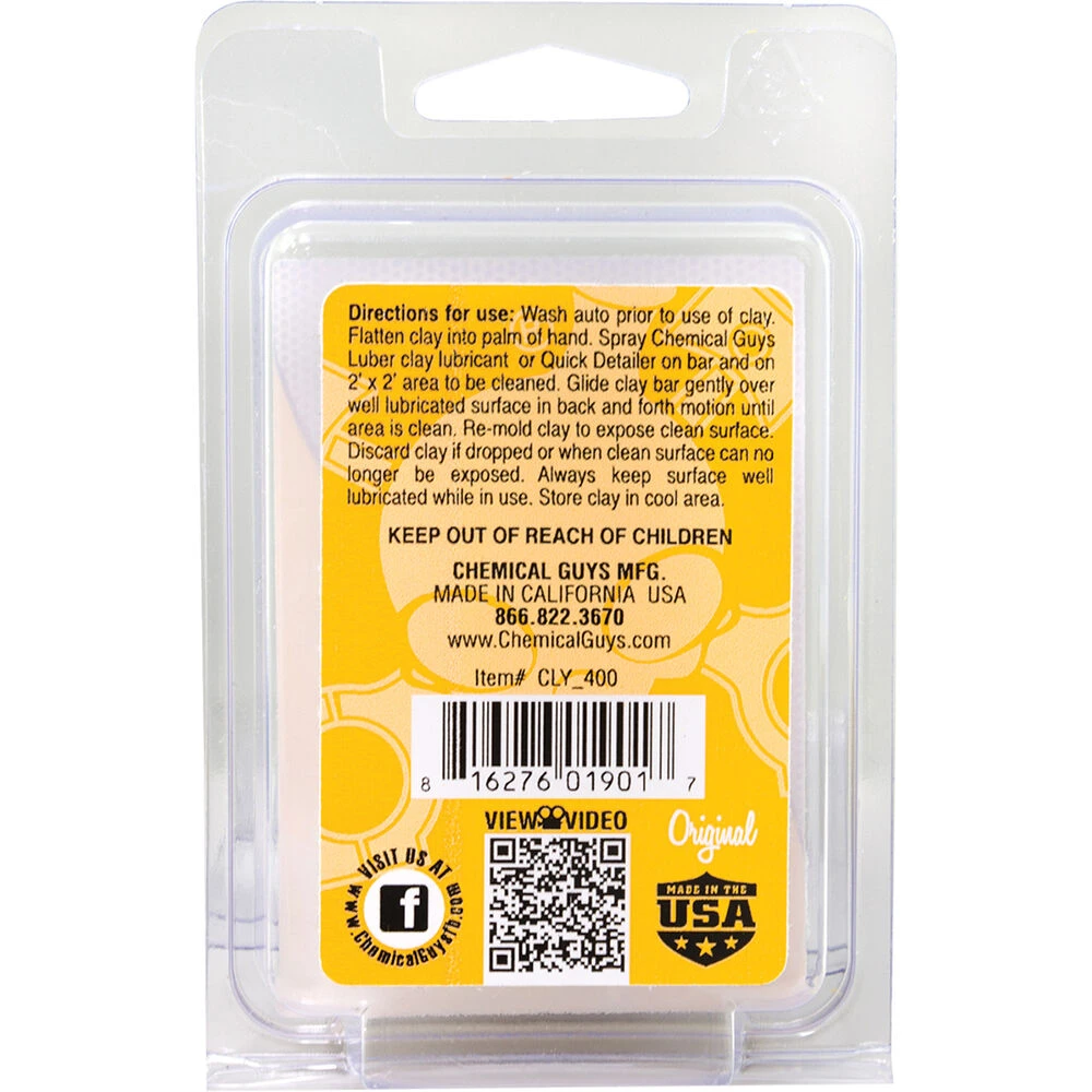 The Original Clay Bar that helps extract and remove light to medium levels of contaminant that some chemicals just can’t – Chemical Guys OG Clay Bar. Think of it like a fancy day-spa or exfoliant to get the best shine back in your vehicle paintwork. The OG and a detailer will pull out contaminants from the paint surface to restore a glass-like finish and help protect the body of the car from damage due to oxidization, tarnishing and peeling.