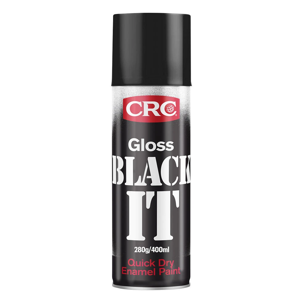 CRC Black It is a single pack, quick drying, enamel paint that provides a tough, durable coating that is resistant to solvents and abrasion to protect metal and other applied surfaces. No mixing is required, simply shake and spray from the 400g can for single-coat convenience.