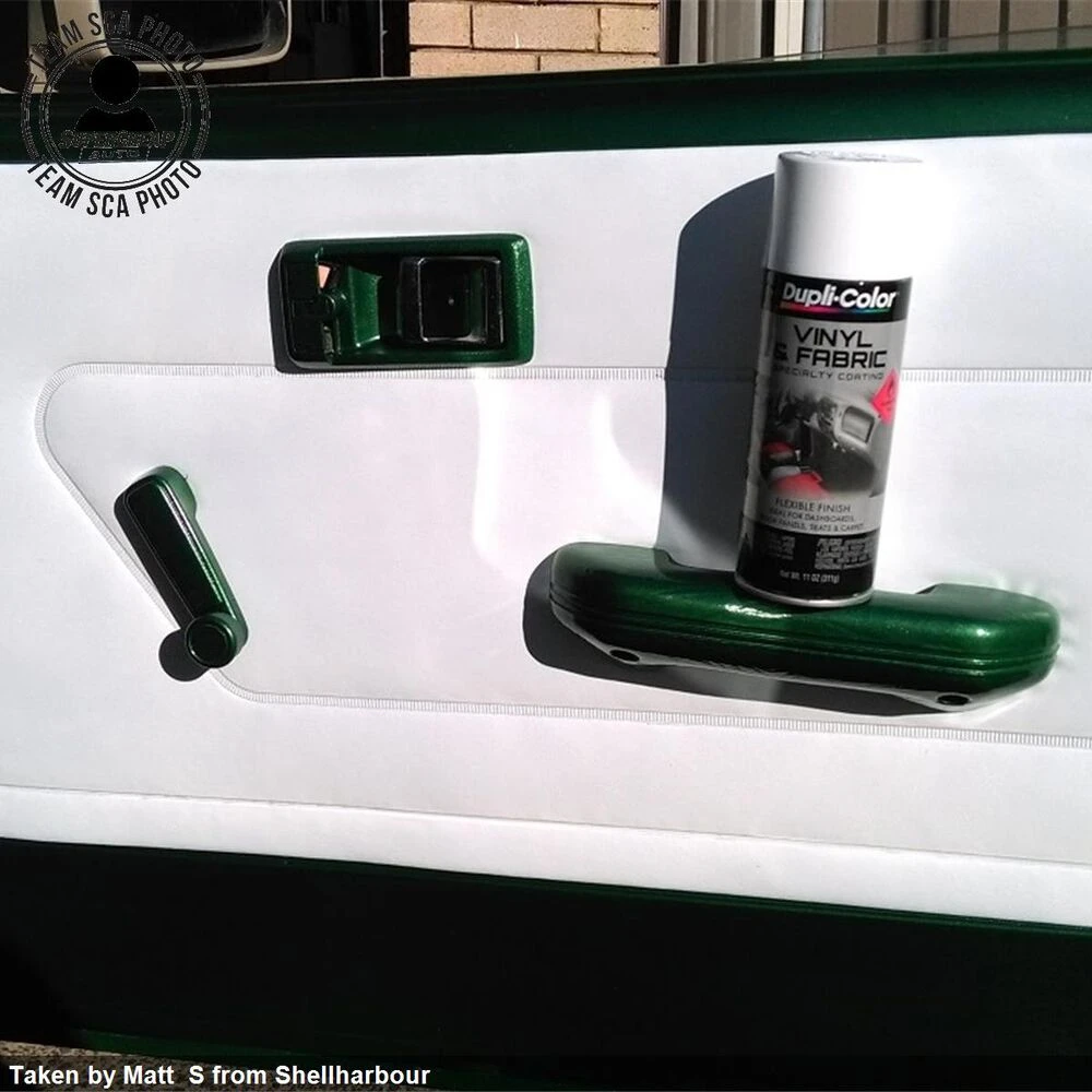 Dupli-color range of vinyl paints are specifically designed for vinyl & fabric surfaces. They can be applied directly to the desired area and are fast drying to touch within 30 minutes. As they are formulated with an adhesion promoter they don’t require a primer and set with a flexible crack/flaking & peeling resistant finish.
