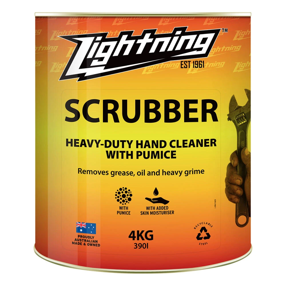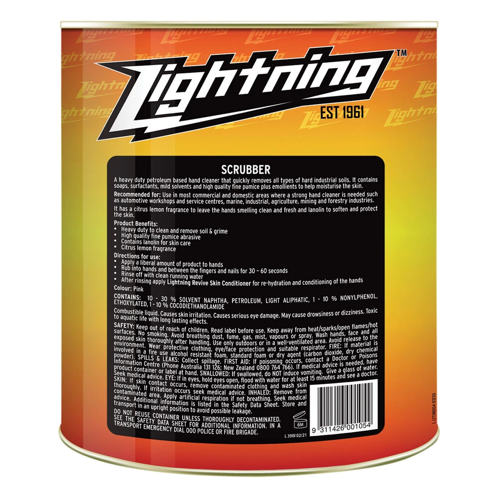 Lightning Scrubber hand cleaner is a unique heavy duty hand cleaner that contains natural citrus oils (d-Limonene) and lanolin that quickly removes most types of hard industrial soils.