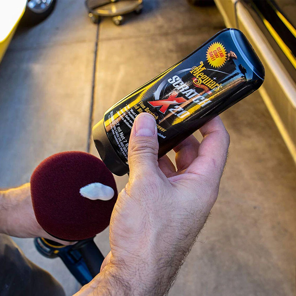 If you’re looking to remove scratches from car paintwork, Meguiar’s Scratch X 2.0 is the perfect solution for isolated fine scratches, swirls, scuffs, fingernail marks, paint transfer, oxidation and other superficial visual paint imperfections. Unlike many similar products that hide or fill the blemish or scratches on paintwork, the exclusive micro-abrasive technology in Meguiar’s Scratch X 2.0 removes blemishes, renews colour vibrancy, and delivers a brilliant gloss with no machine work required. Keep Scratch X close at hand for quick removal of isolated paint problems.