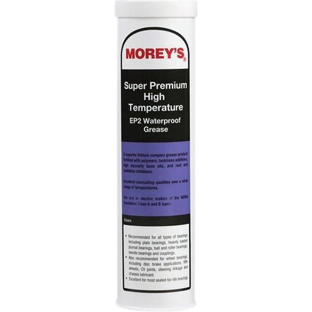 Morey’s Premium High Temperature Purple Grease, a superior lithium complex grease fortified with polymers, tackiness additives, high viscosity based oils and rust and oxidation inhibitors, the advanced formulation of a grease unsurpased in adhesive and film strength