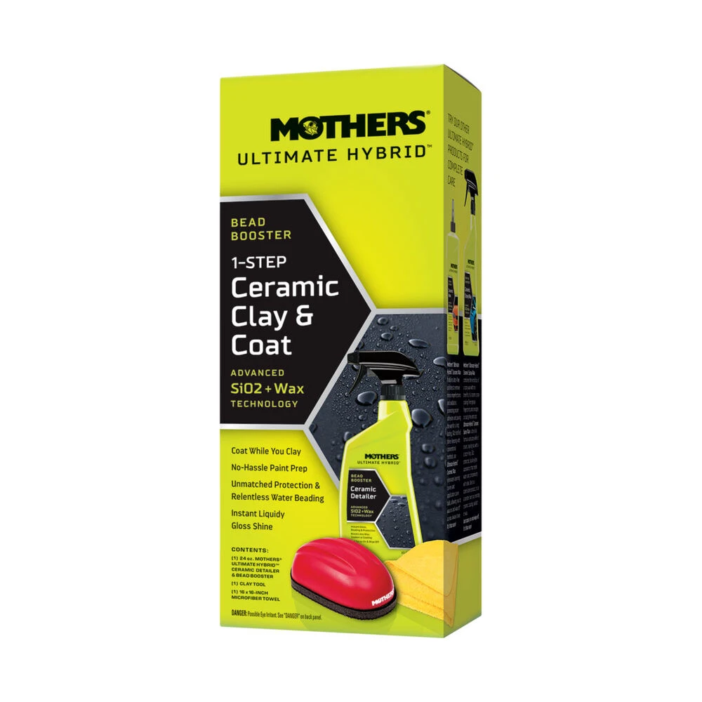 Mothers Ultimate Hybrid 1-Step Ceramic Clay & Coat is an all-in-one surface prep and preservation system. Ceramic Clay & Coat features a balanced blend of advanced science and traditional car care with the natural protection of carnauba wax and the cutting-edge nano-quartz ceramic technology of today.
