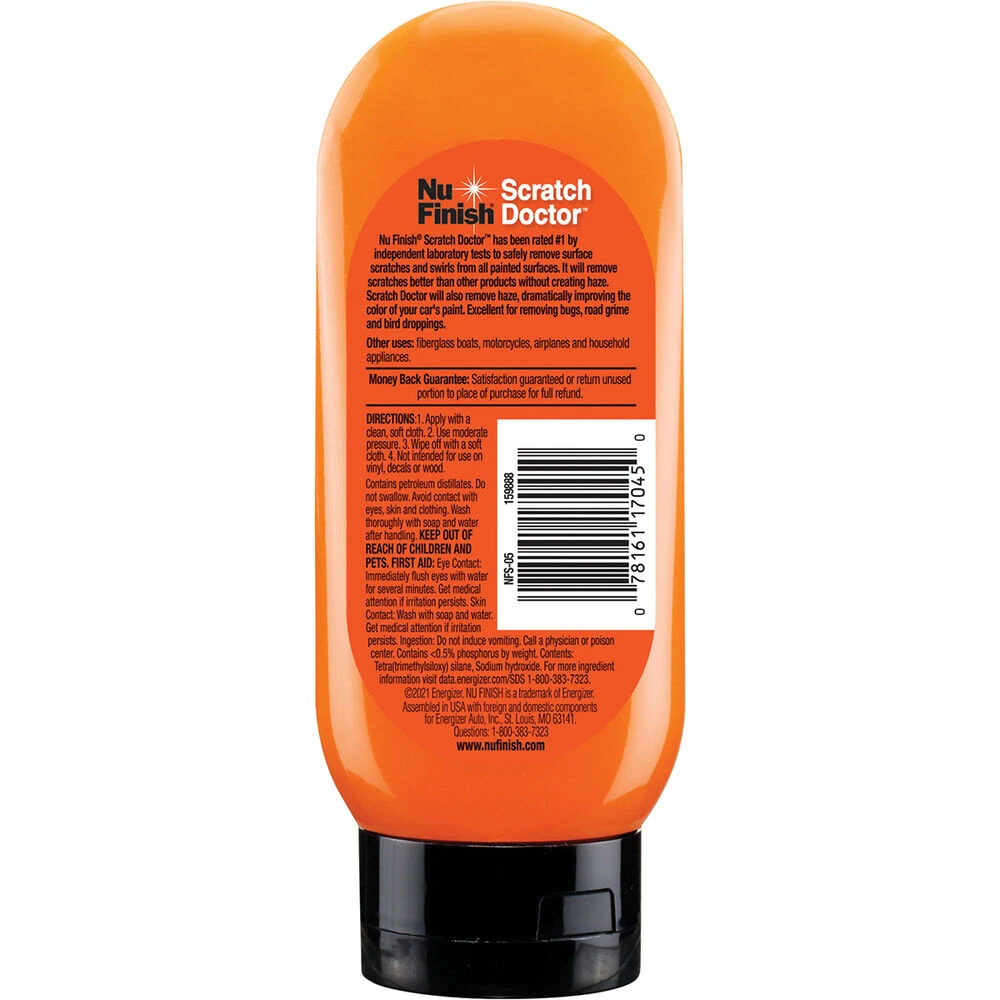Nu Finish Scratch Doctor is a #1 independent lab-tested and rated, leading scratch, swirl and haze removal solution. Nu Finish will exceed the expectations of even the most discerning car enthusiast, when second-class just won’t do. The superior micro-technology, clear-coat formula will remove superficial paint scrapings and blemishes and also diminish the appearance of deep abrasion marks.