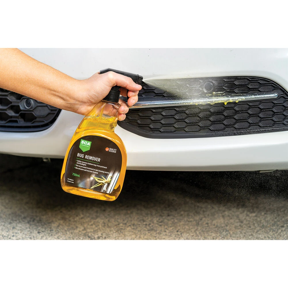 Bug splatter is not only unsightly, but when left on your vehicle can cause irreversible damage to the paintwork or clear coat. When left on headlights and windscreens, bug splatter can also cause a safety hazard by impairing vision and smearing when being wiped away with windscreen wipers. Make removal a piece of cake with SCA Bug Remover. Safe to use on glass, plastic and painted surfaces this handy spray lifts insect remains quickly and easily, reducing the need for scrubbing which can cause swirl marks and paint degradation. Use as a spot cleaner before washing your vehicle to avoid dragging larger contaminants across the surface to ensure your paint stays glossy.