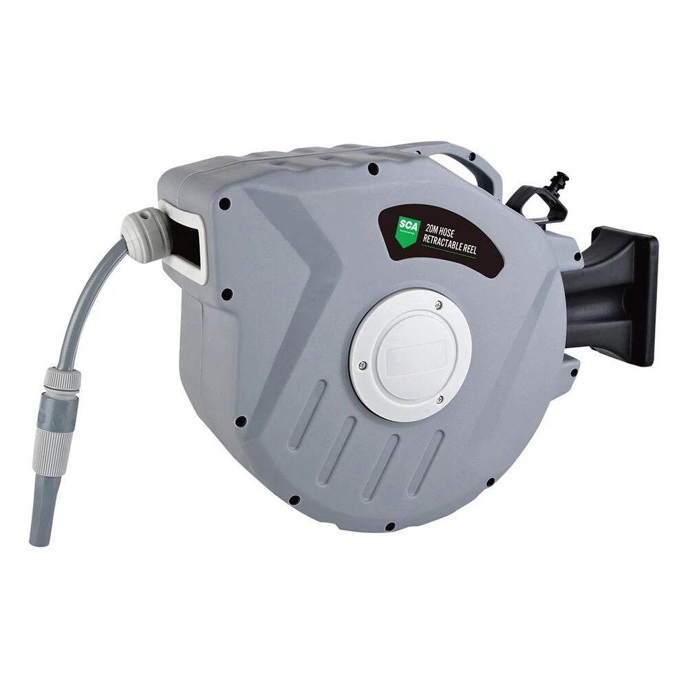 The Retractable Garden Hose features a 20m retractable hose designed to be wall mounted for ease of use and mobility. To aid in keeping your garden hose eat and tidy, with an easy, automatic hose rewind, look no further than the SCA Retractable Garden Hose.