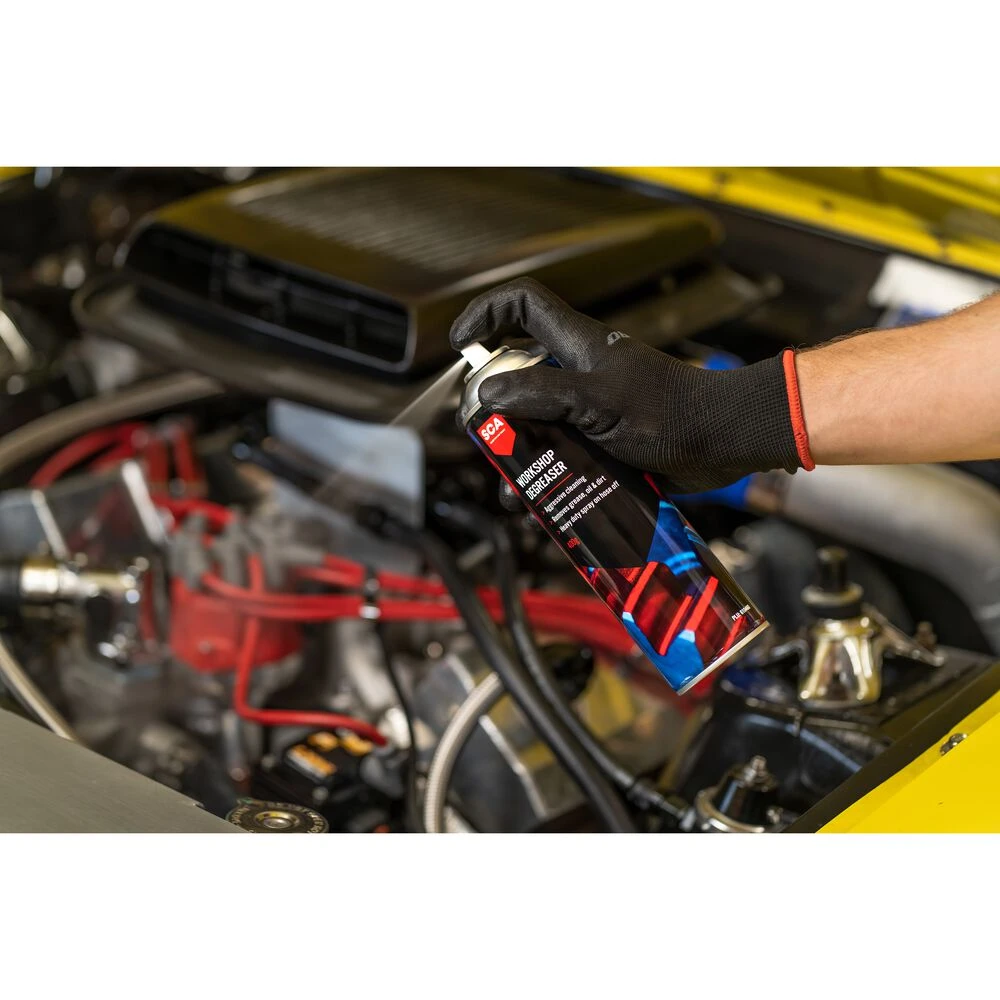 Look no further, SCA aerosol workshop degreaser makes quick work of it. This multi-purpose degreaser helps by breaking the bond between the surface and the contaminant, allowing them to be easily washed away with water. This large 400g aerosol can creates a strong jet of degreaser, great for dislodging contaminants in hard to reach areas; simply spray onto the surface, let soak and hose off. For super stubborn grease or old driveway stains multiple applications and agitation in the form of a brush, cloth or pressure washer can aid in speeding up the process.