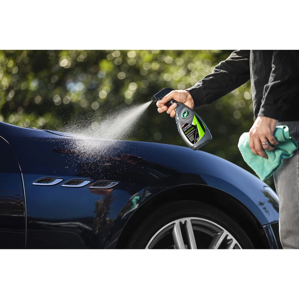 Turtle Wax Hybrid Solutions Ceramic Wax Coating is the ultimate method of long-lasting ceramic protection for your vehicles exterior surfaces. This easy to use product sprays on and wipes off with very little effort while delivering superior shine and protection, while also delivering unmatched hydrophobicity and ceramic protection that will last a minimum of 6 months. Turtle Wax Hybrid Solutions Ceramic Wax Coating, when used even occasionally as part of your regular maintenance schedule, keeps your car’s exterior looking new and helps your car stay cleaner longer with a super-hydrophobic protective barrier to help prevent dusty soils from re-depositing on exterior surfaces. With Turtle Wax Hybrid Solutions Ceramic Wax Coating, car care has never been easier.