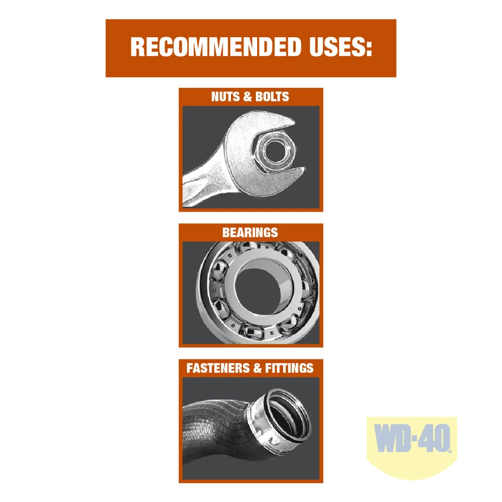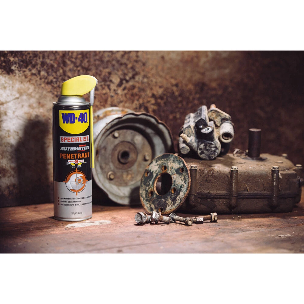 WD-40 Specialists Automotive range has been specifically formulated for automotive repair and maintenance. The WD-40 Specialist Automotive Penetrant spray will quickly penetrate seized fasteners and stuck parts for easy disassembly or removal, perfect for rusted or corroded parts. The formula is safe to use on most surfaces, minimizing the risk of damage to surrounding materials. Application is easy, simply spray on, allow to soak for 2-3 minutes and you’re good to go. If the first application wasn’t enough, repeat as necessary.